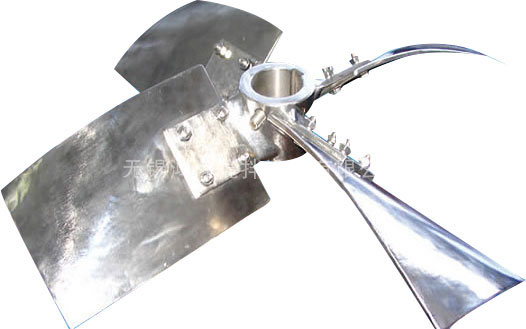 雙葉弧面槳式軸流低速型攪拌器,一般在層流或過渡流狀態(tài)下工作,有較大的軸向分流,排液能力比傳統(tǒng)的斜葉槳式提高25%。適用于中、低粘度物料勻質(zhì)、調(diào)和、溶解或高粘度的大直徑多層低速攪拌。