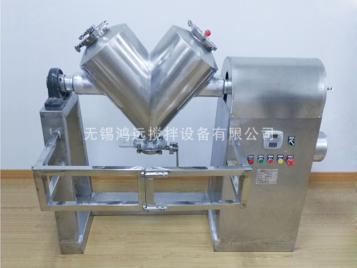 V型混合機(jī)是較為通用的粉末、顆粒狀物料混合機(jī)。它具有結(jié)構(gòu)簡單,容易操作,維護(hù)清洗方便,速度快,混合效果佳等特點(diǎn)。